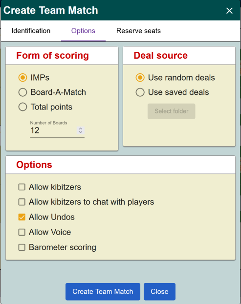 - Only when all players are seated should you click Create Team Match, NOT before. (Do not click Close at any stage.). Hopefully, you are then whisked to the right tables and start to play. Be careful not to click the button twice.
